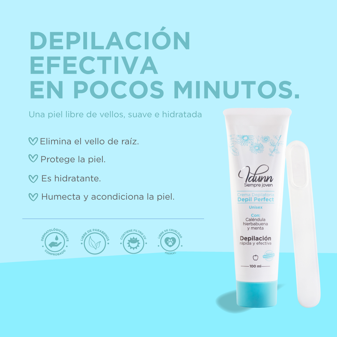 Producto para la depilación rápida y efectiva en menos de 5 minutos de vellos corporales desde la raíz.