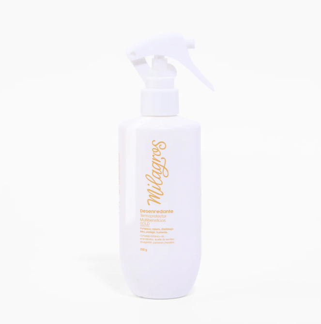 Protege, desenreda y cuida tu cabello con el Desenredante Termoprotector Multibeneficios GOLD. Su fórmula avanzada ofrece una protección térmica superior frente al calor de secadores, planchas y rizadores hasta 230°C, mientras facilita el peinado y el desenredado, dejando tu cabello hasta un 91% más manejable.
