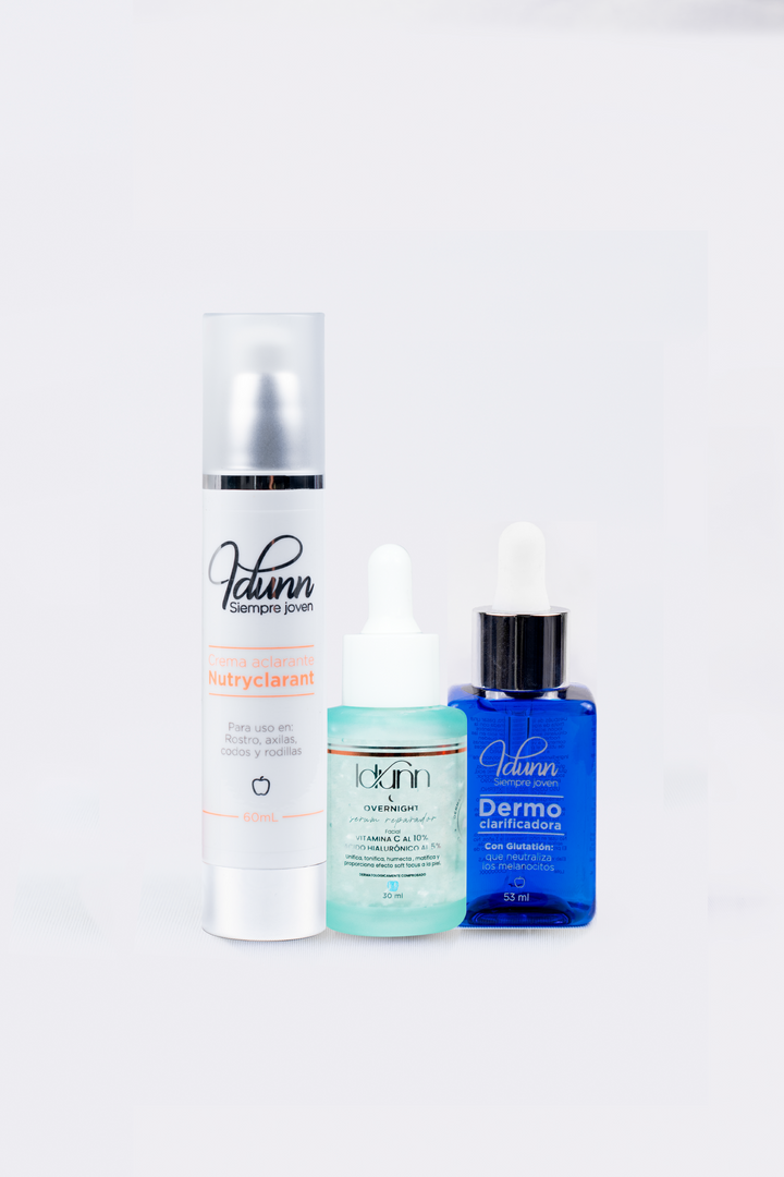 Loción Dermoclarificadora: Para un rostro libre de manchas, radiante y saludable. Es una mezcla que combina agentes humectantes, hidratantes y aclaradores, los cuales nos permitirán obtener un producto que ayudará a disminuir notablemente el tono oscuro de esas manchas molestas, además te brindará una mejor apariencia de la piel. Deja la piel radiante, saludable y natural. Ayuda a eliminar células muertas, controlar la producción de melanina, actúa sobre puntos negros, granos, espinillas e imperfecciones del rostro. Protege la piel contra los efectos ocasionados por la exposición al sol y por factores externos como la contaminación y el humo. Estimula la síntesis del colágeno a nivel intracelular.