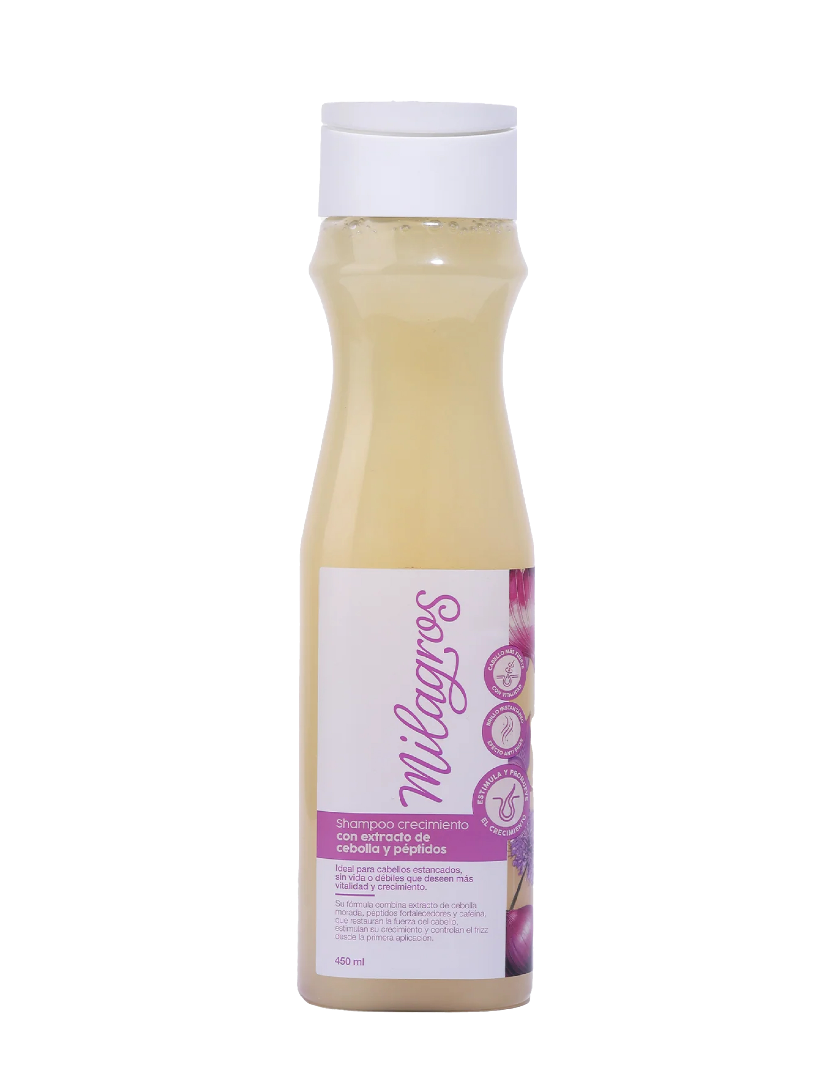 Su fórmula combina extracto de cebolla morada, péptidos fortalecedores y cafeína, que restauran la fuerza del cabello, estimulan su crecimiento y controlan el frizz desde la primera aplicación.